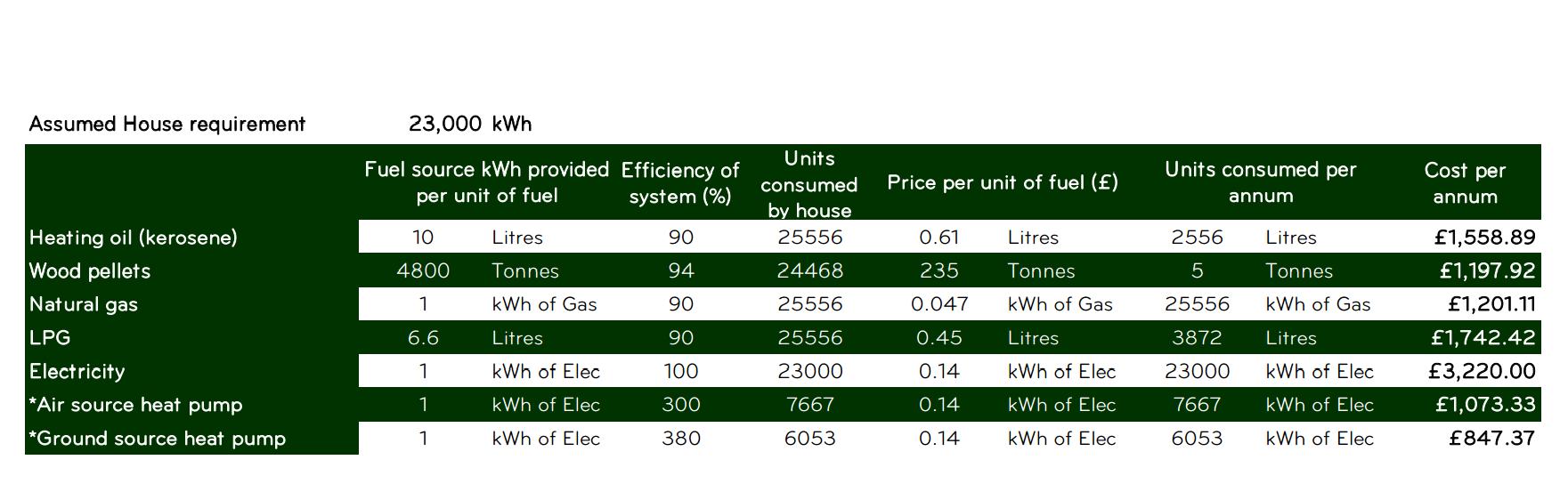 *Calculations based on continuous operation at maximum efficiency. Fuel costs taken from Nottingham Energy Partnership.